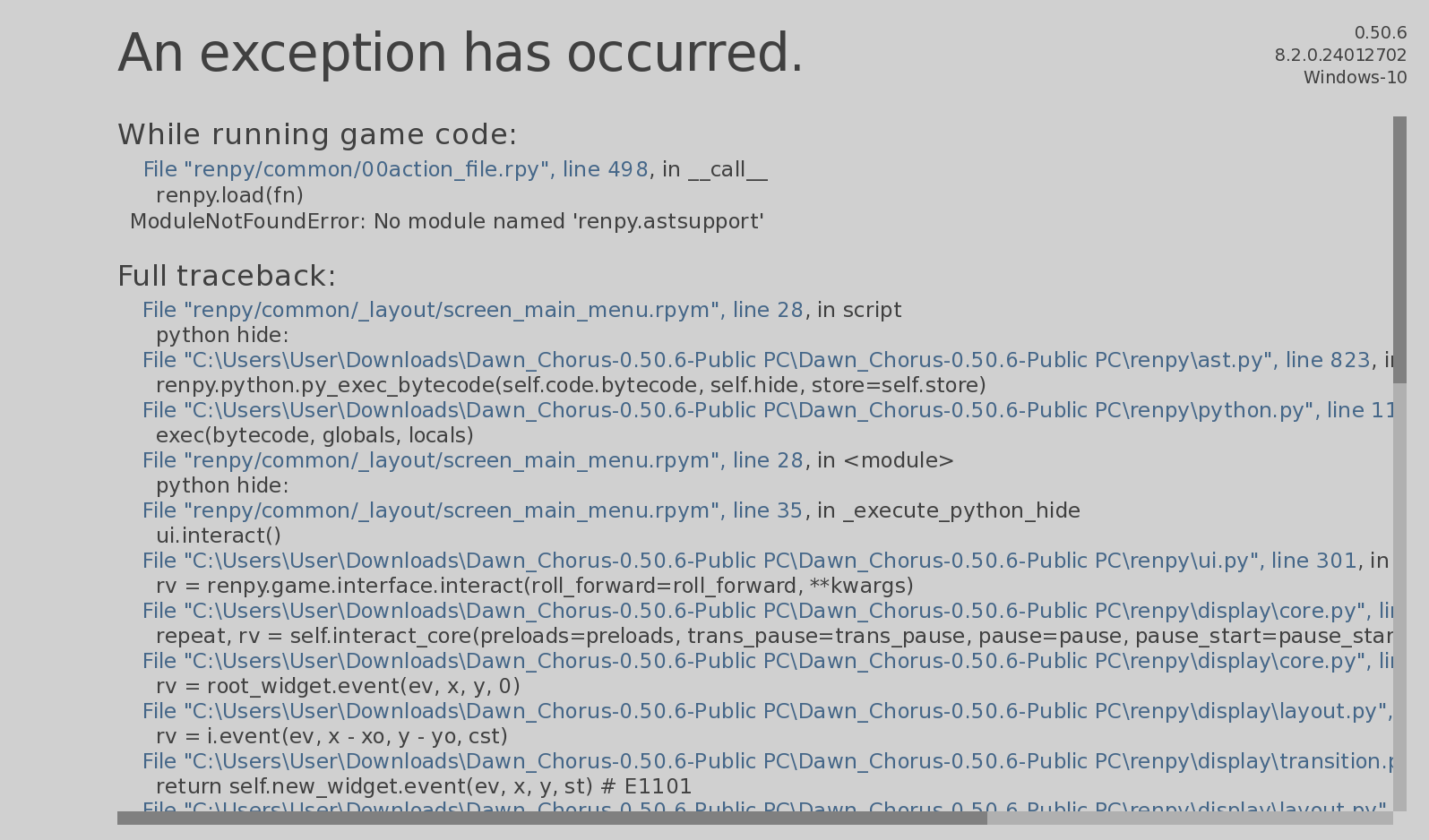 %APPDATA%\renpy find dawn chorus in there and delete it (unsure about this step, but there are dawn chorus save files in there)